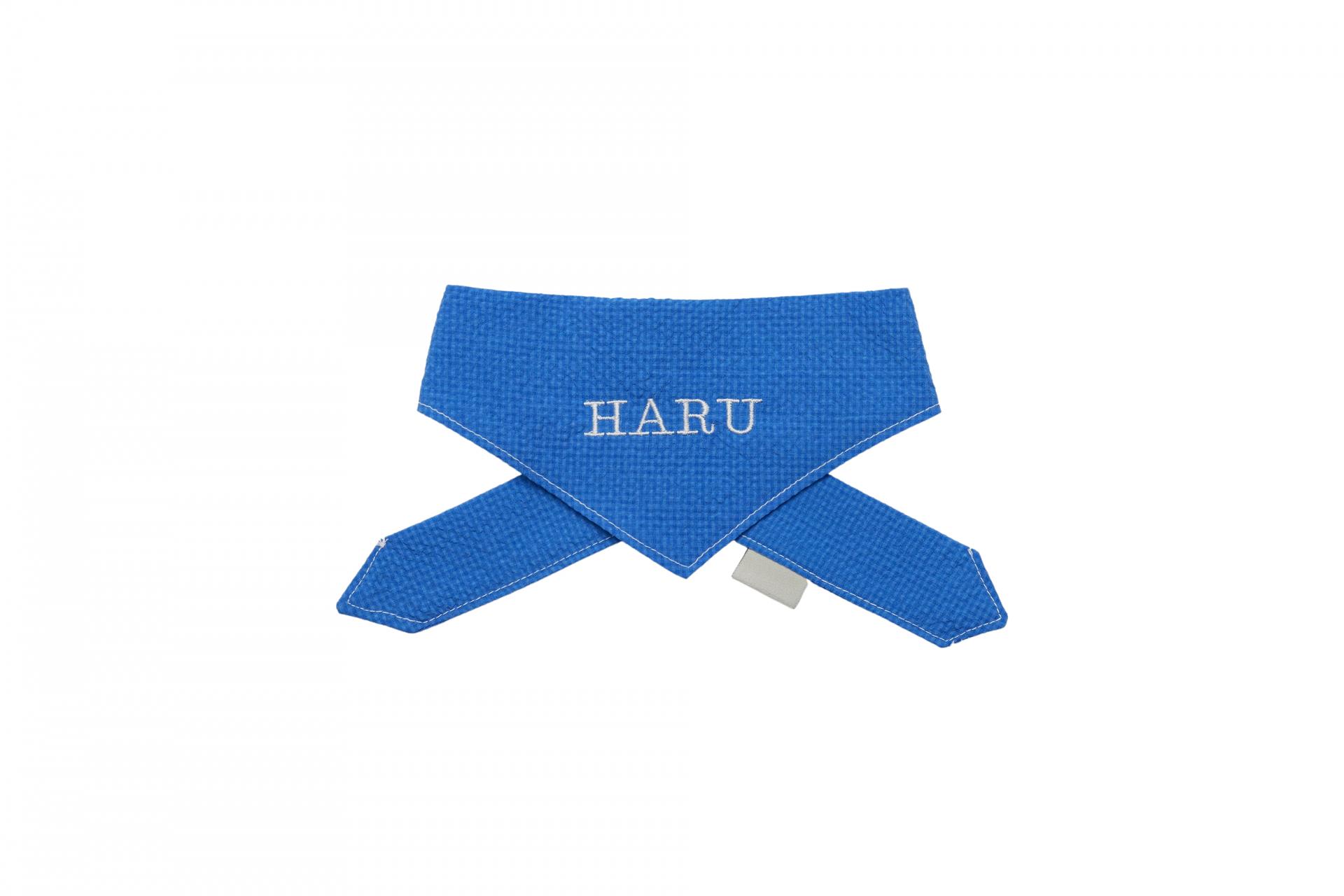 강아지의 이름을 자수로 새겨 포인트로 착용하는 네이밍 스카프입니다.