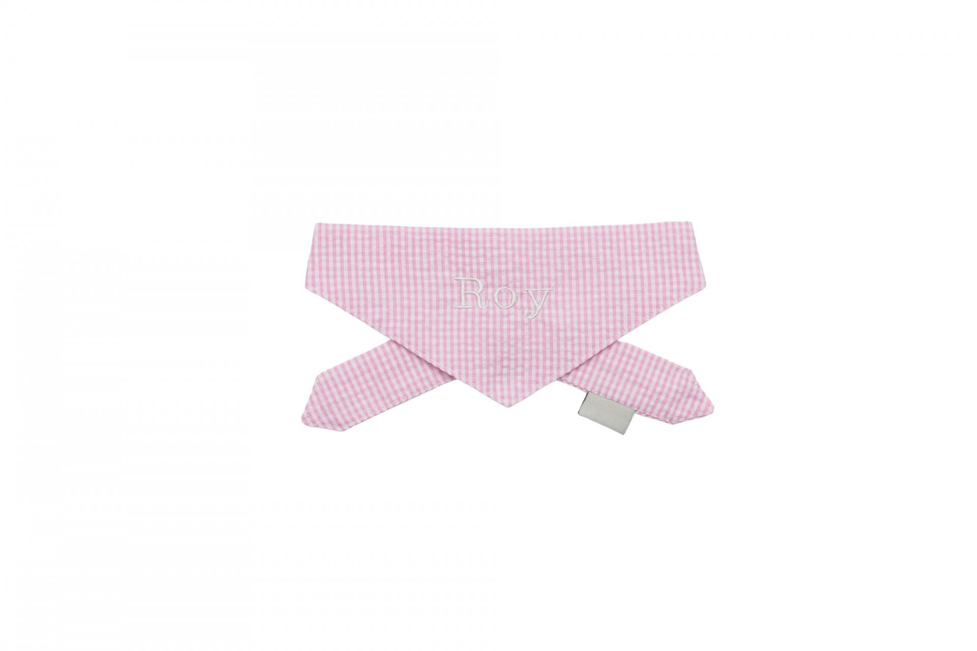 강아지의 이름을 자수로 새겨 포인트로 착용하는 네이밍 스카프입니다.